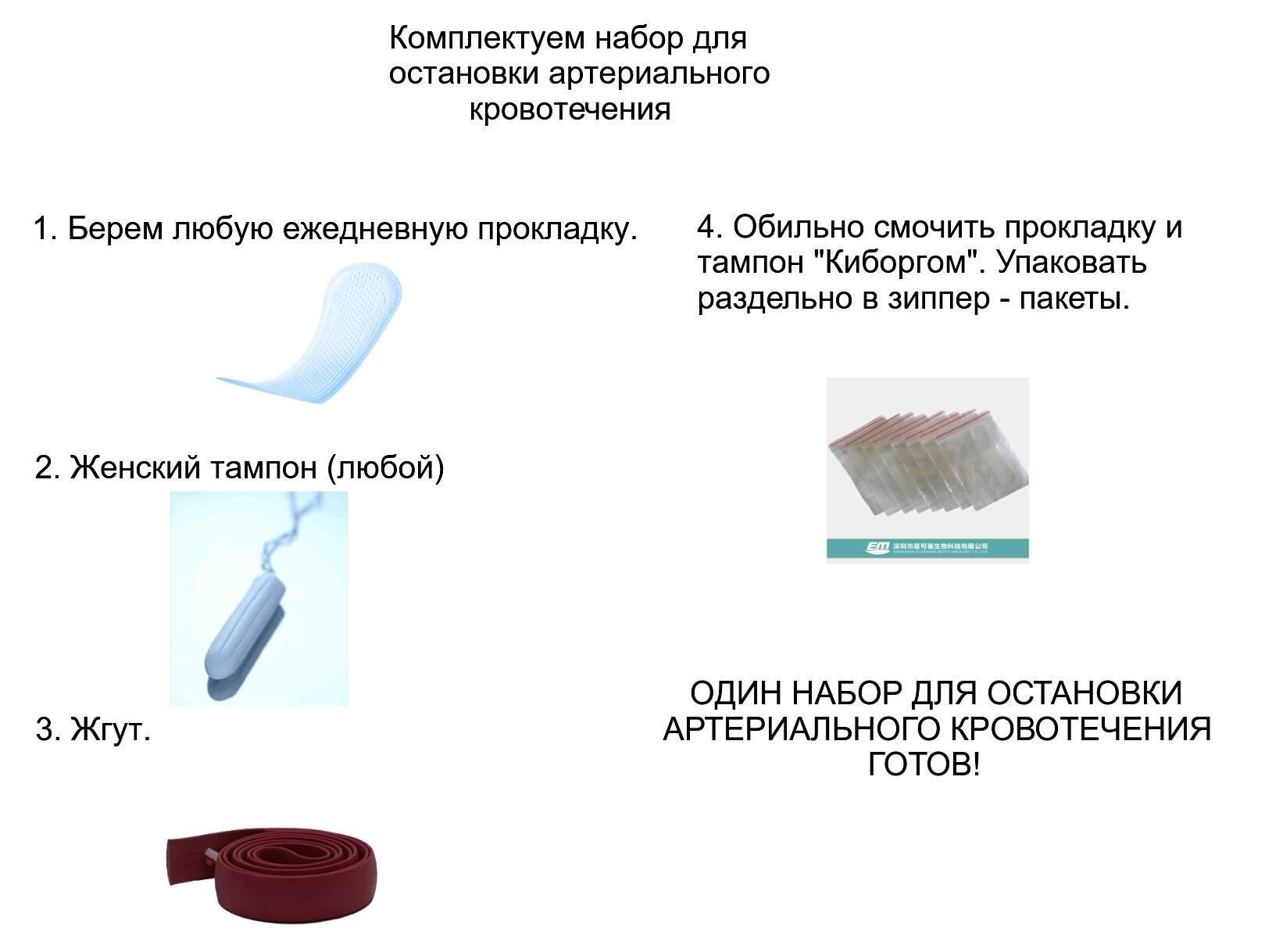 Положа руку на сердце, лично мне больше нравился первый комплект. Он выходил, конечно дороже… Пакетики, жгут, тампоны, прокладки, бинты… Но с ним 100%-я гарантия остановки артериального кровотечения, без побочных эффектов, в виде ампутации конечностей.