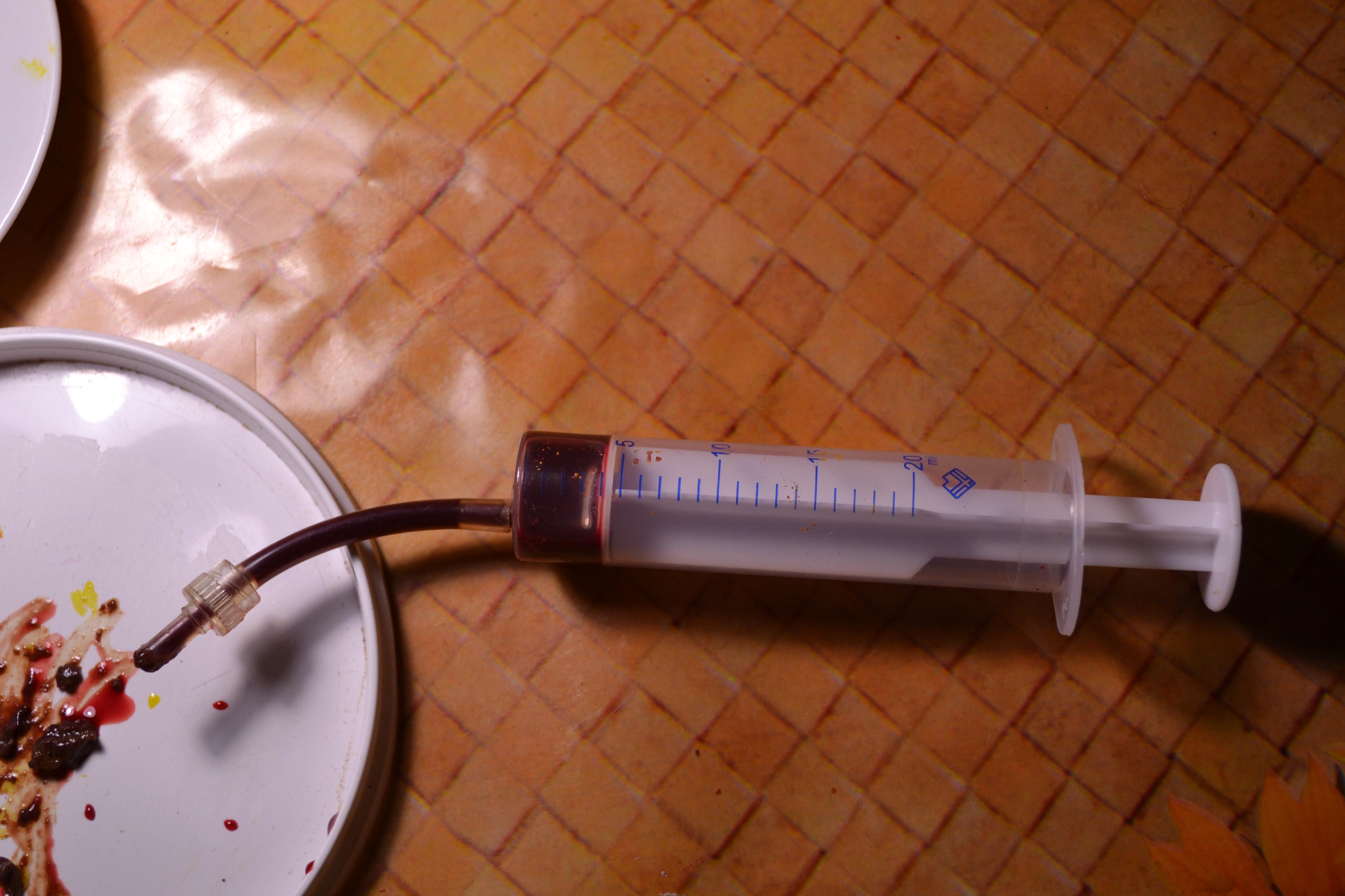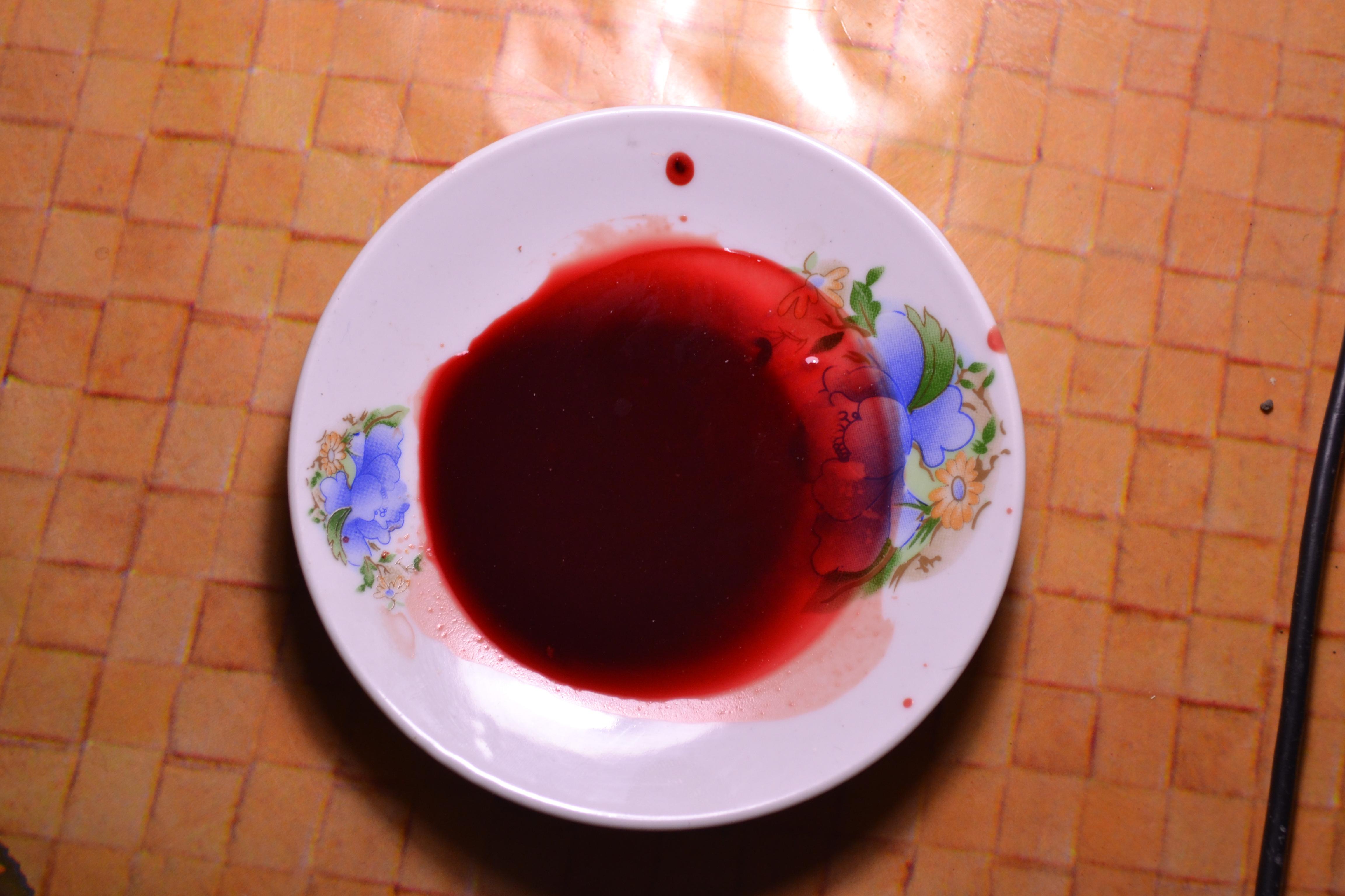 Я в магазине выпросила немного свиной крови и мы провели свой опыт. Хотелось во очи удостовериться в реальном действии этого гемостатика